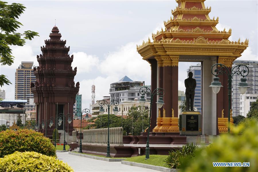 Photo taken on Sept 19, 2020 shows the statue of late Cambodian King Father Norodom Sihanouk in Phnom Penh, Cambodia. [Photo/Xinhua]