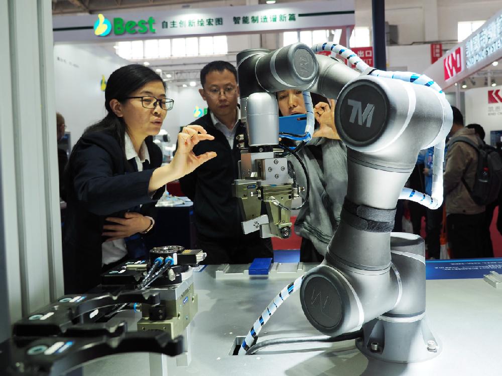 Visitors check out new technology at the 17th China International Machine Tool Show at the new venue of the China International Exhibition Center in Beijing. The center also operates another exhibition site in downtown area. [Photo by DU JIANBO/FOR CHINA DAILY]