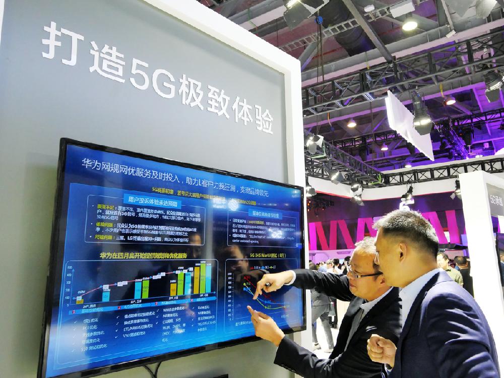 Huawei's 5G booth during an industry expo hosted by China Mobile in Guangzhou, Guangdong province. [Photo by Li Zhihao/For China Daily]