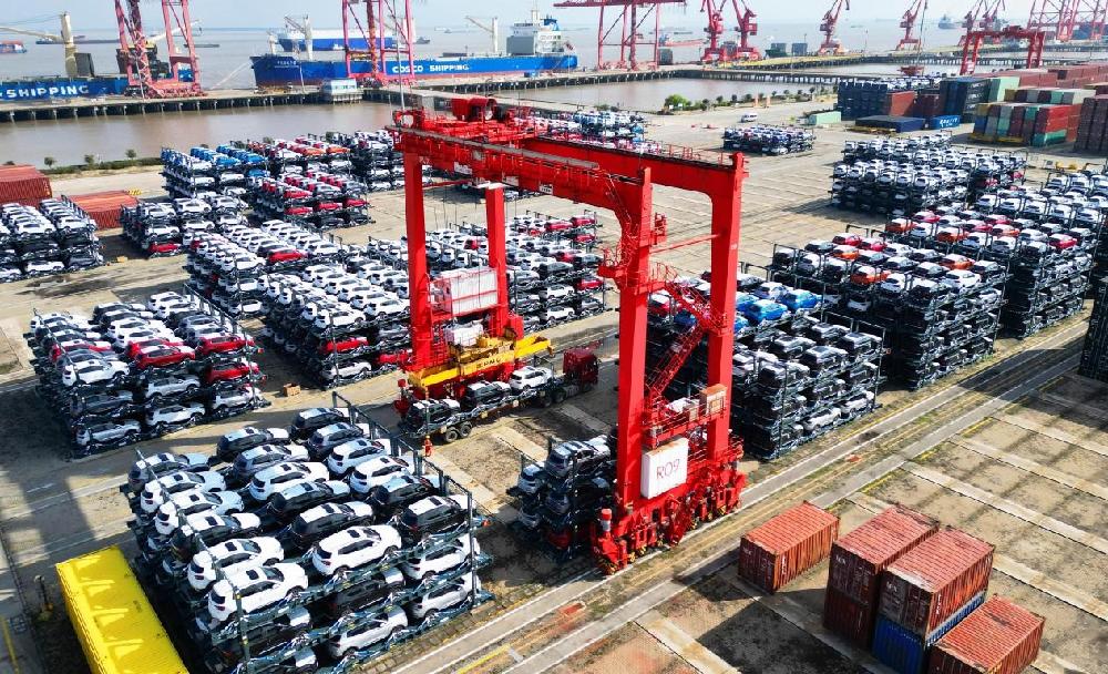 Major ports in China witnessed the global expansion of Chinese electric vehicles (EVs) and relevant industrial chains. In the first three quarters of this year, the exports of EVs via the north Chinese port city of Tianjin skyrocketed 667.7 percent year on year. In the same period, the combined exports of electric passenger vehicles, lithium batteries and solar batteries via Shanghai surged 143.3 percent from a year ago.