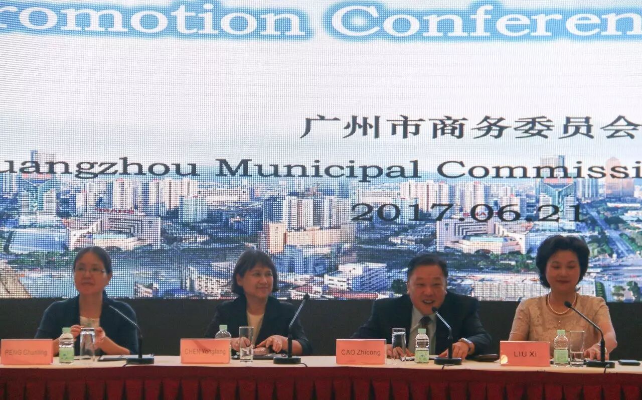 此次推介会由广州市商务委巡视员曹智聪(右二)主持,广州市商务委陈泳芳副主任(左二)、广州海关彭纯玲副巡视员(左一)、广州市人民政府口岸办刘曦主任(右一)现场分别致辞并发表重要讲话。