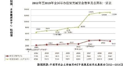 中国贸促会发布的《中国展览经济发展报告(2019)》(以下简称《报告》)显示,2019年全国举办经贸类展会3547个,同比下降6.5%;但展览总面积为13048万平方米,同比增长0.8%。