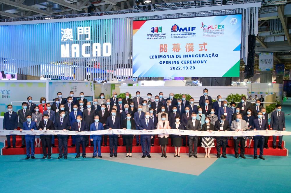 人民网澳门10月20 日电 (记者富子梅)“第二十七届澳门国际贸易投资展览会” (第27届MIF)、“澳门国际品牌连锁加盟展2022” (2022MFE)及“2022年葡语国家产品及服务展(澳门)(2022PLPEX)”20日在澳门同场开幕。澳门特别行政区行政长官贺一诚、中央人民政府驻澳门特别行政区联络办公室副主任严植婵、外交部驻澳门特别行政区特派员公署署理特派员王冬、浙江省人民政府副省长卢山、青海省政协副主席张黎、澳门特别行政区立法会主席高开贤、澳门特别行政区政府经济财政司司长李伟农、江苏省人民政府副秘书长黄澜及中国-葡语国家经贸合作论坛(澳门)常设秘书处秘书长季先峥等出席开幕式。