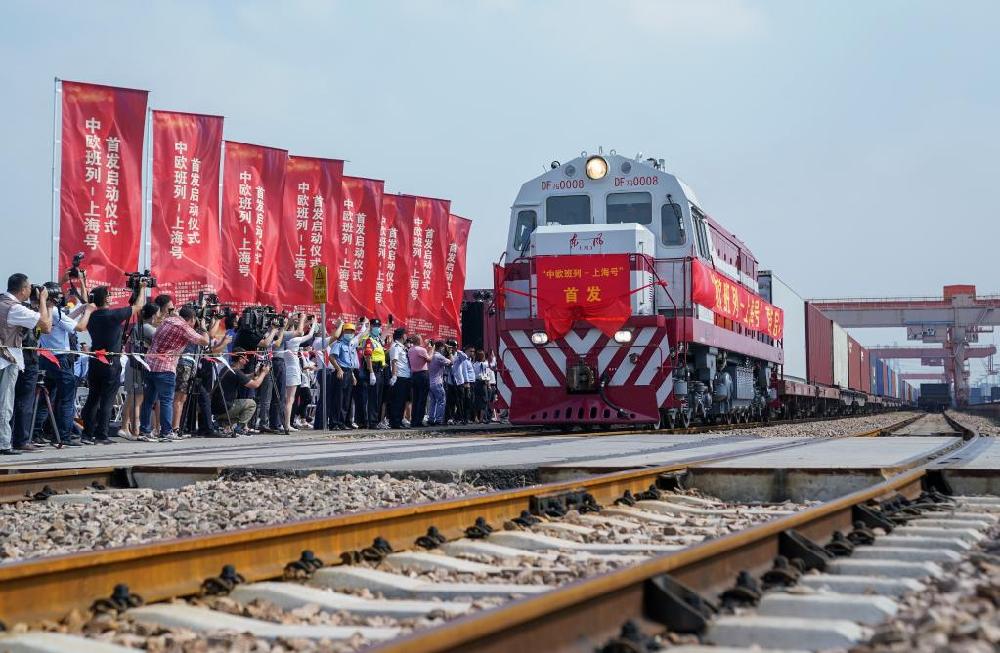 2021年9月28日,“上海号”中欧班列从上海首发,驶向德国汉堡。新华社记者丁汀摄