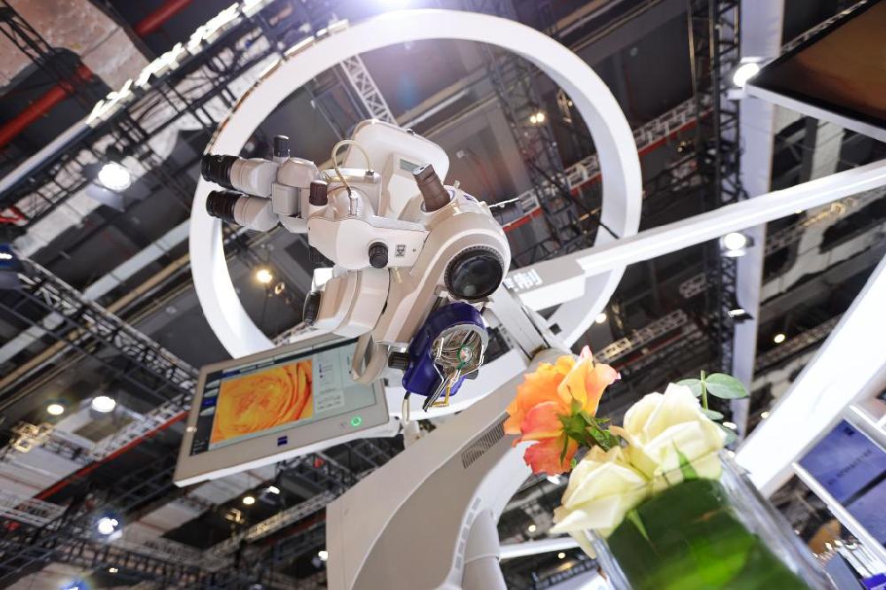 11月6日在第五届进博会蔡司展台拍摄的眼科导航手术显微镜。新华社记者李京摄
