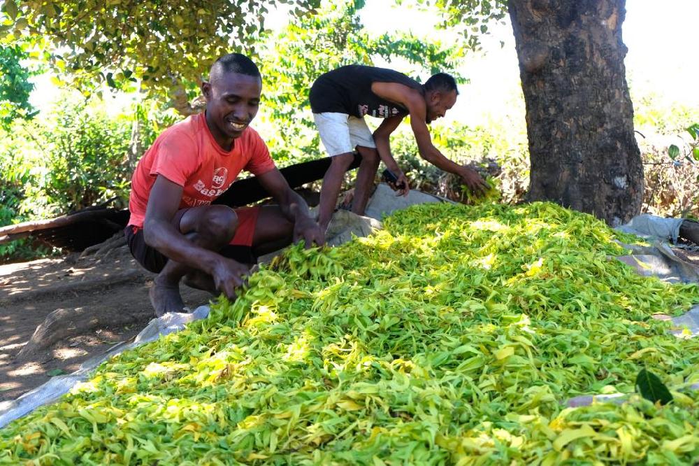 9月23日,在马达加斯加诺西贝,工人挑选用于制作精油的伊兰伊兰。今年,诺西贝的伊兰伊兰精油“飘香”到了中国国际进口博览会。新华社记者凌馨摄