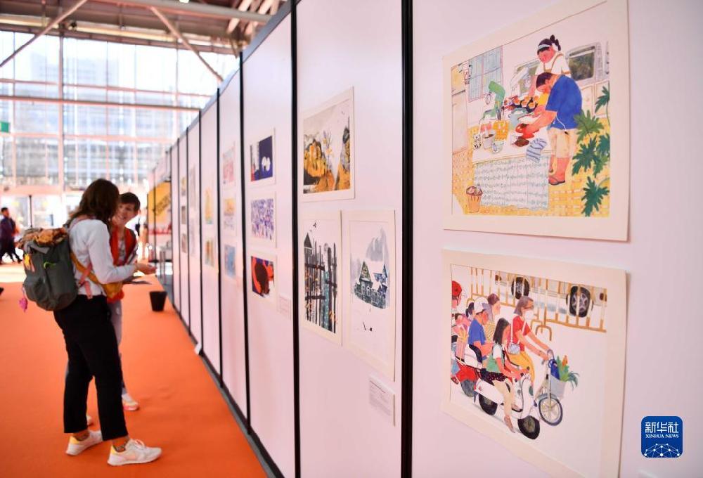 3月7日,人们在意大利博洛尼亚国际儿童书展上欣赏画作。第60届博洛尼亚国际儿童书展于3月6日至9日在意大利博洛尼亚会展中心举办。该书展创始于1964年,是世界少儿图书和多媒体行业最重要的展会之一。新华社记者 金马梦妮 摄