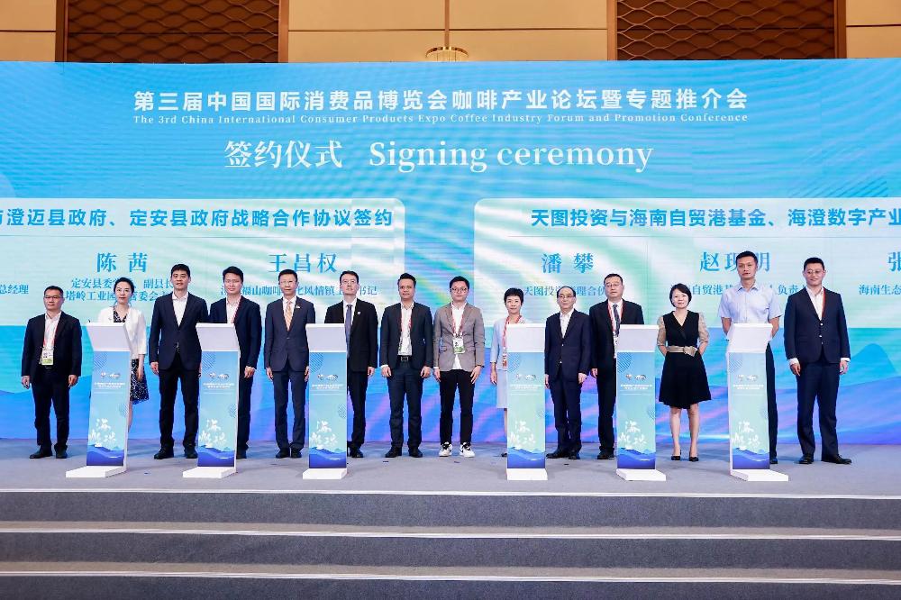 在论坛上,省农业农村厅负责人对海南咖啡产业进行推介。现场,印尼火船集团与母山咖啡还举行了海南首店的合作启动仪式;越南中原传奇咖啡与澄迈县政府,天图投资与海南自贸港基金、海澄数字产业基金进行了战略合作签约。