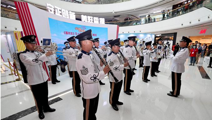 5月30日,《中华人民共和国香港特别行政区基本法》及《中华人民共和国香港特别行政区维护国家安全法》内地巡回展来到山西太原。图为香港警察乐队在现场演奏。 中新社记者 张云 摄