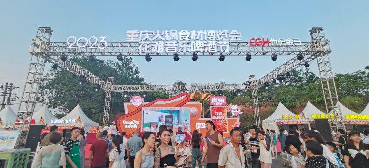 7月8日,2023重庆火锅食材博览会暨合川花滩音乐啤酒节在合川区花滩国际新城世纪乐都拉开帷幕。重庆市商务委副主任彭和良、合川区委书记郑立伟出席并宣布开幕。