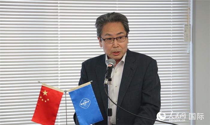 日本国贸促专务理事安田真人在日本路演会场发表致辞。人民网 许可摄