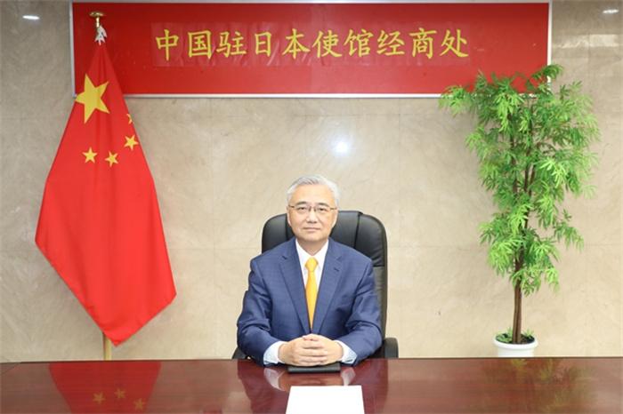 中国驻日本大使馆经济商务公使宋耀明通过视频连线致辞。中国驻日本大使馆经济商务处供图