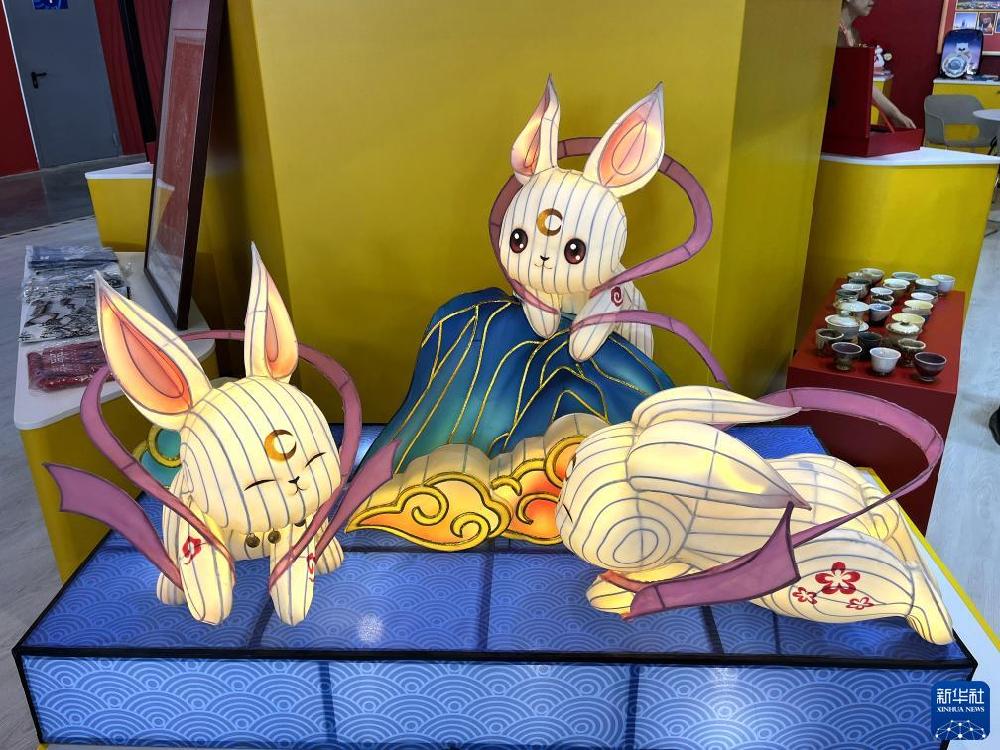 这是7月11日在俄罗斯叶卡捷琳堡举办的第七届中俄博览会上拍摄的中方参展方展出的花灯。