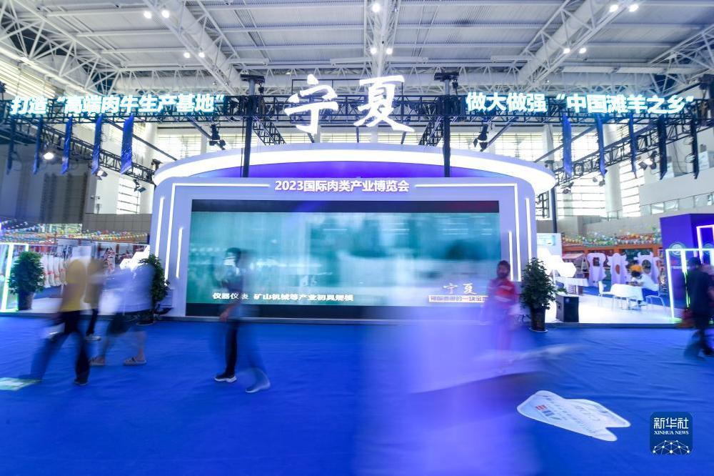当日,2023国际肉类产业博览会在宁夏银川市国际会展中心开幕。本届博览会以“优供给、创品牌、促消费、助发展”为主题,邀请国内外300余家企业携千余款优质鲜冻肉、预制菜、配料配具、机械设备、服务软件等产品参与展示,1000余家采购商参会。新华社记者 冯开华 摄