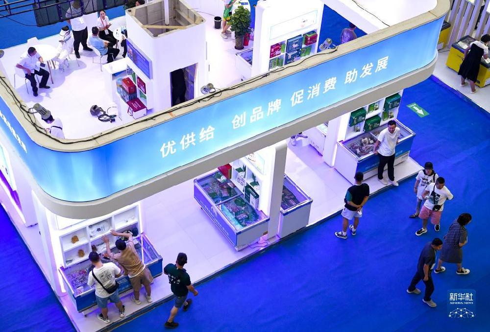 这是7月14日拍摄的2023国际肉类产业博览会现场。