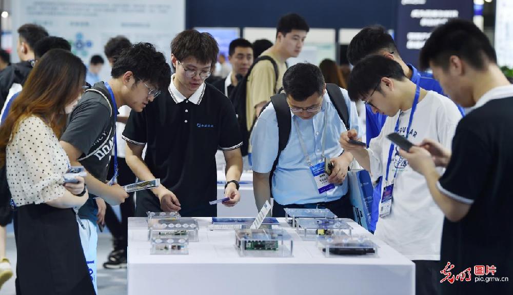 7月19日,以“芯纽带,新未来”为主题的2023世界半导体大会在江苏南京国际博览中心举办,共为期三天。大会同期举办大型专业展览,展览面积达20000平方米,设立IC设计、封装测试、制造、设备与材料4大重点展区以及人才专区,参展企业为观众展示半导体行业先进技术和高端产品。