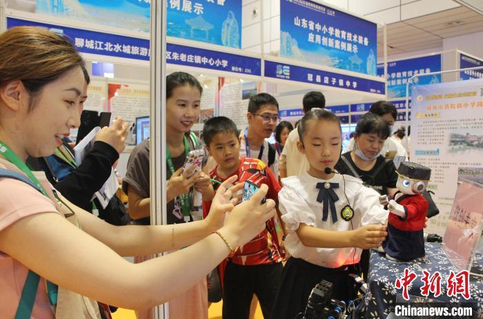 当天,记者在现场看到,智慧书法教室、AI智能黑板、数字化教学中台、虚拟仿真实验实训互动平台等新型教育装备亮相山东省教博会,引观众驻足咨询,不少家长带着孩子现场体验新应用、新产品。