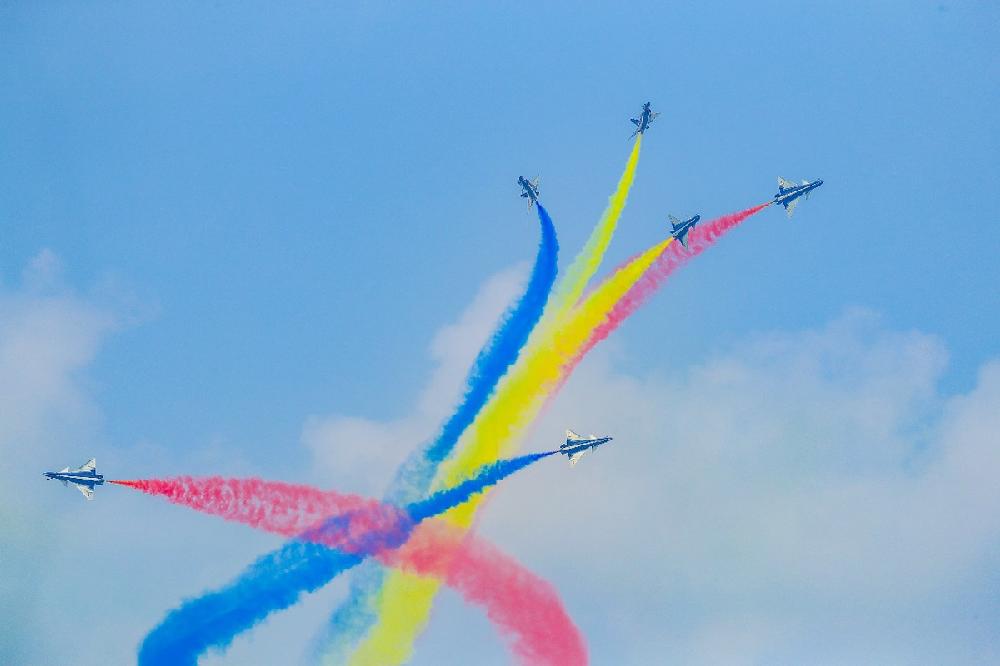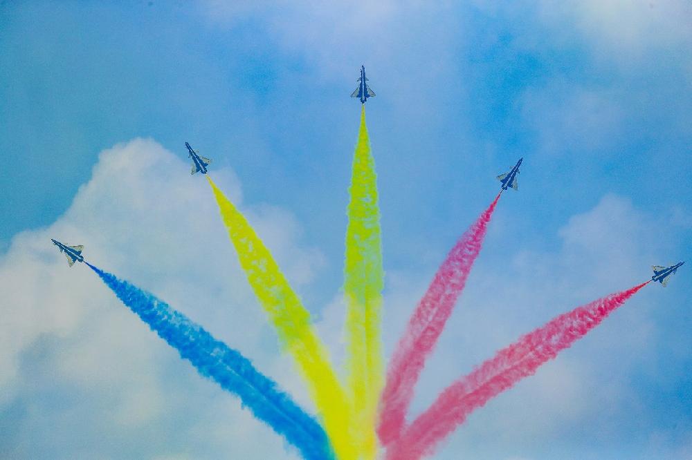 开幕式上,“八一”、“红鹰”、“天之翼”飞行表演队以及歼-20、歼-16、运油-20等多型飞机炫舞蓝天,为公众带来了一场精彩的“蓝天盛宴”。