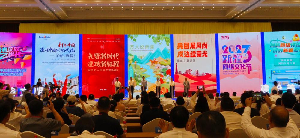 同时,“万人说新疆”网络传播活动、“礼赞新时代 建功新征程”网络名人国情考察新疆行、“打卡中国?读懂中国式现代化”网络国际传播活动、2023 新疆网络文化节、“兵团展风尚 戍边续荣光”网络主题活动、“网评新疆”网络评论大赛以及“青春绽放Z世代”全疆大学生创意演讲大赛七项网络主题活动也在会上启动。