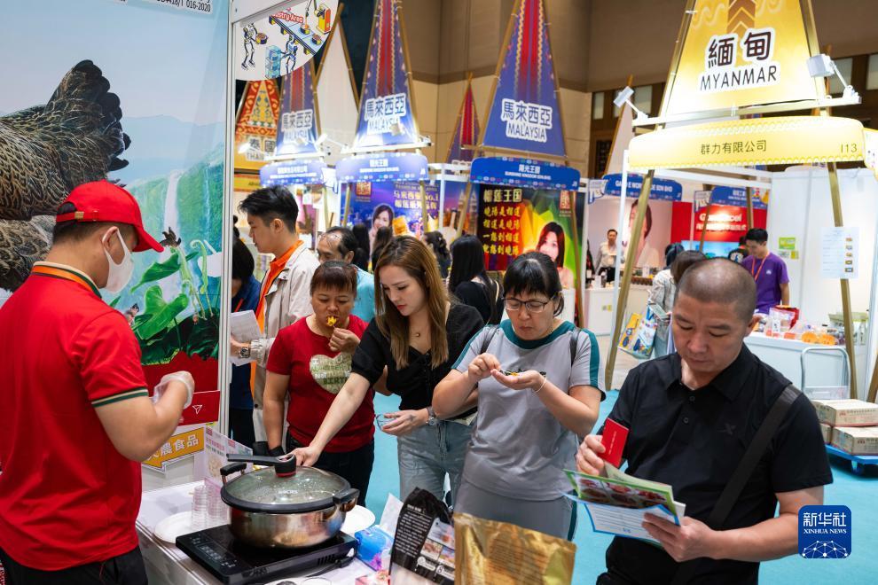7月27日,人们在2023粤澳名优商品展“一带一路”展区参观。