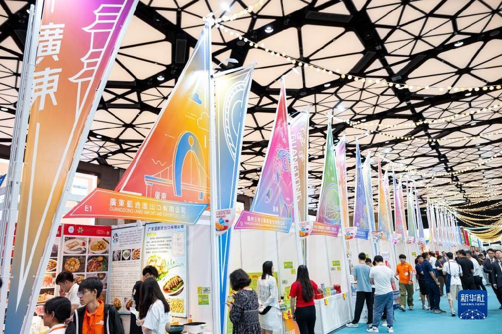 7月27日,人们在2023粤澳名优商品展广东展区参观。