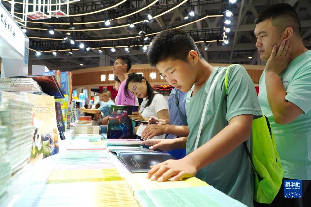 7月27日,在第31届全国图书交易博览会上,读者在阅览新书。