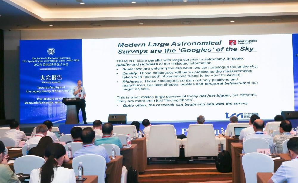 大会开幕式由北京航空航天大学苏东林院士对与会的重要嘉宾进行了介绍,中国光学工程学会副理事长吕跃广院士、澳大利亚麦考瑞大学Richard de Grijs教授发表开幕致辞。来自美国、德国、俄罗斯、等国家和地区的专家、学者,各高??蒲性核硗?省、市有关部门单位负责人以及新闻媒体朋友近1200余人参加了此次开幕式。