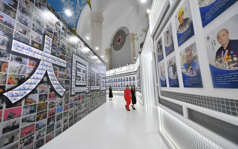 7月27日,新京报记者提前探展。展览现场设置了大国工匠展区、全国总工会展区、创新工作室联盟专题展区、北京市总工会展区、产业工会展区、地区工会展区共六大展示交流区,共展出职工创新成果1200多件。不少展区都带来“大国重器”,如全国总工会展区展出航天、电力、轨道交通、海洋装备、交通通讯、能源化工、制造等多个领域114件创新成果实物。