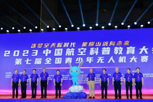 (图为:第七届全国青少年无人机大赛吉祥物揭幕)