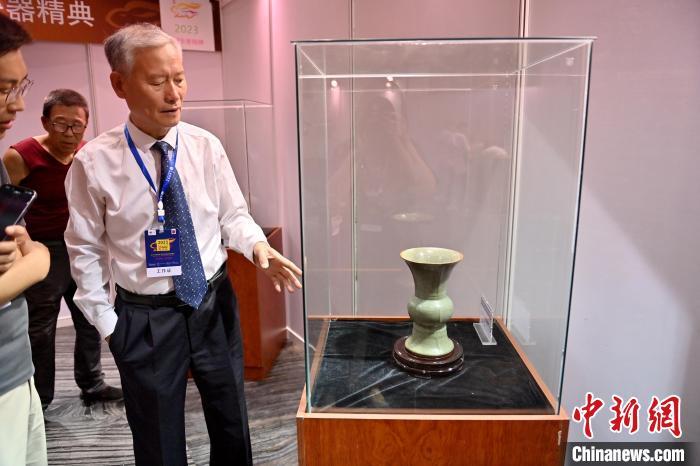 刘民朝介绍南宋官窑出戟尊。张瑶 摄