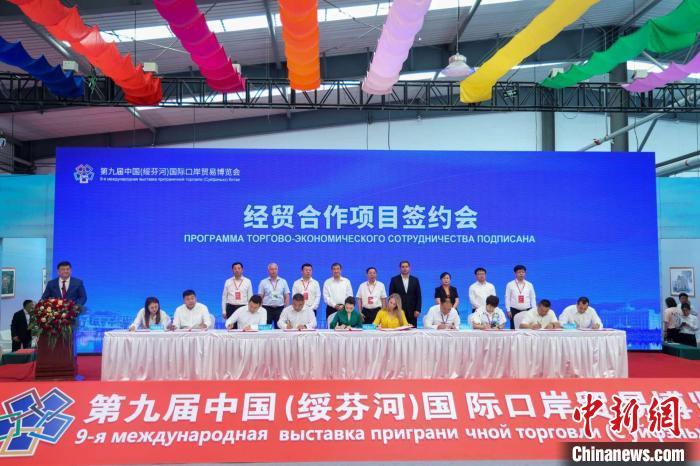 9日,第九届中国(绥芬河)国际口岸贸易博览会在绥芬河举行经贸合作对接会。200余家中外企业代表齐聚,共签订35个合作项目,签约额达111.4亿元人民币。