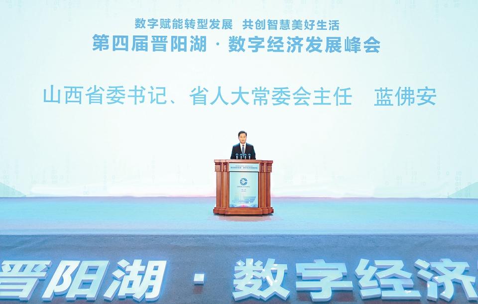 8月23日,第四届晋阳湖·数字经济发展峰会在太原举行。图为省委书记蓝佛安出席开幕式并致辞。(记者李联军摄)