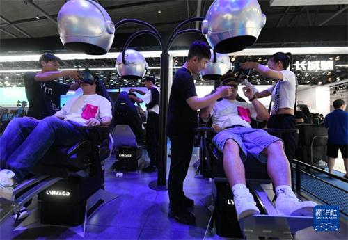 8月25日,在第二十六届成都国际汽车展览会,参观者在体验VR虚拟驾驶。新华社记者 唐文豪 摄