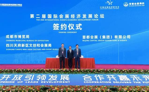 当日,首都会展集团先后与成都市博览局、四川天府新区文创和会展局,以及法国智奥会展集团签署合作协议,进一步推动国内外会展业各领域深度合作。