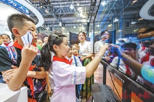 博览会上,小朋友进行互动答题。记者 林双伟 摄