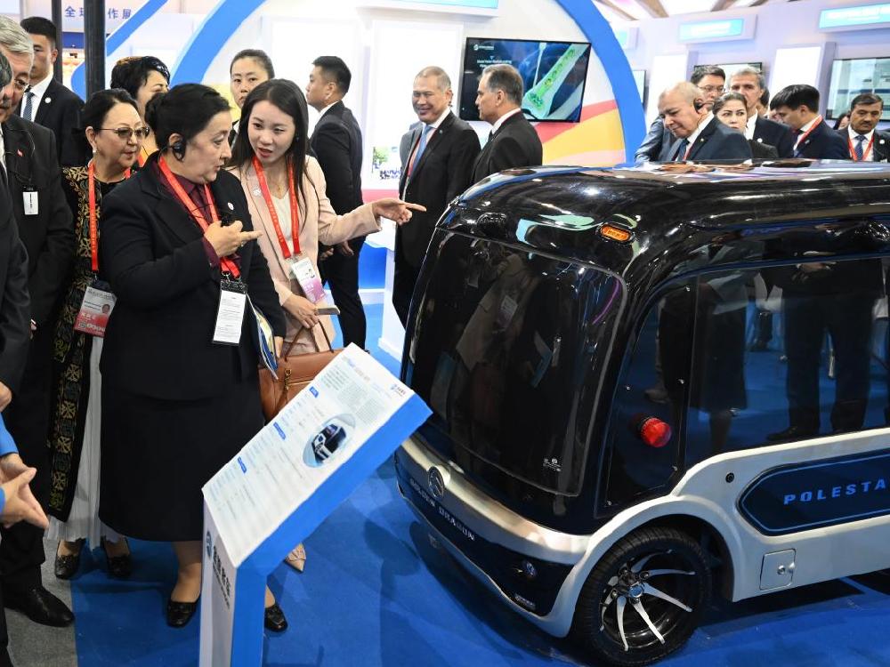 9日上午,中国—中亚国家合作成果展区内??孔乓涣拘履茉垂怀?,上车体验的嘉宾和客商络绎不绝,这是厦门金龙联合汽车工业有限公司的客车新产品。得益于“一带一路”国际合作,厦门金龙近十年来向中亚国家出口客车已超1000台。今年3月,200辆金龙BRT公交车从厦门启航,发往乌兹别克斯坦首都塔什干,这是中国首次向乌兹别克斯坦出口18米BRT公交车。