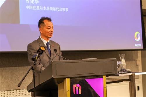 2023年9月15日,中国驻墨尔本领馆代总领事曾建华在2023澳中博览会开幕仪式上致辞。 (摄影 李一鸣)