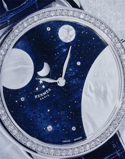 据了解,今年高级制表的趋势主要体现在三个方面——轻复杂功能、动力储存、防水性能。展会讲座现场,主题讲师表示,越来越多高级腕表会选择将一些轻复杂功能,融入到原本就充满装饰艺术感的腕表上,比如爱马仕今年新推的ARCEAU系列小月相。“表盘图案拥有三个球面,宛如精密太空中的星球群,蓝白主色调非常精致耐看,而作为复杂功能的立体月相被放在指针10点的位置边上,既美观还增添技术含量?!?/span>