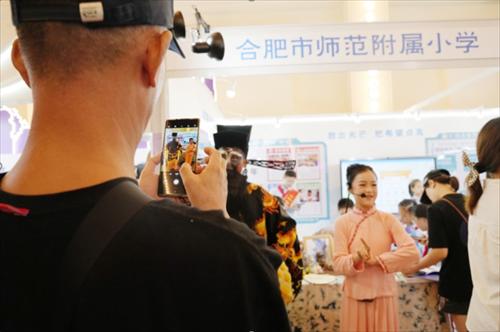 9月15日至17日,2023第二十届上海教育博览会在上海展览中心举办。本次上海教博会以“共创一流城市教育 共筑教育强国梦想”为主题,全面展现长三角教育事业呈现的蓬勃活力和优质成果。在线下展馆,“长三角家门口的好学?!敝魈庹骨晌淮罅恋?,主要展出的是沪苏浙皖三省一市10所学校的办学理念和办学特色。合肥市师范附属小学作为安徽省两所学校代表之一,受邀参加本次教博会。