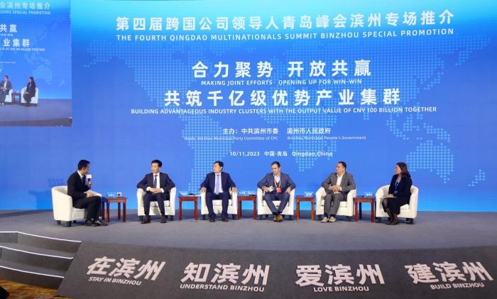 10月11日下午,第四届跨国公司领导人青岛峰会“跨国公司推介滨州专场”在青岛举行?;疃杀踔菔形⑹姓靼?,以“合力聚势开放共赢共筑千亿级优势产业集群”为主题,邀请到50多家世界500强企业、中国500强企业和行业领军企业参加。