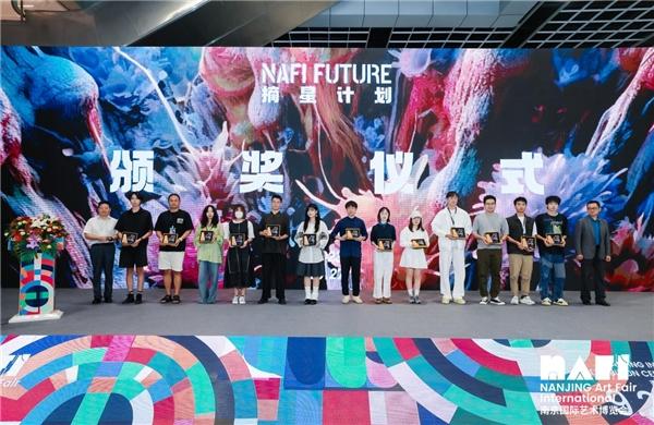 嘉宾致辞结束后,开幕式现场对2023年「NAFI FUTURE·摘星计划」入围及获奖的青年艺术家进行了颁奖?!刚羌苹故悄暇┕室帐醪├阑嶙槲嵊?023年推出的一项贯穿全年的青年艺术家扶持计划,旨在鼓励和推动新一代艺术家的创作展示和原创力。在历时半年的校园宣讲和作品征集后,组委会通过专业、严谨的审核机制,从来自国内外的200余位报名者、近600件报名作品中,精心挑选了十三位青年艺术家,他们的作品也将在NAFI2023的现场进行呈现。