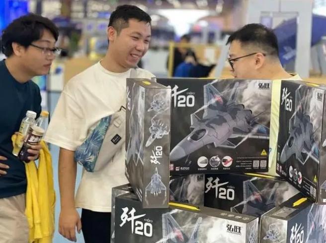 在2023亚洲通用航空展文创产品区,几个年轻人一起开心交流。刘占崑/摄