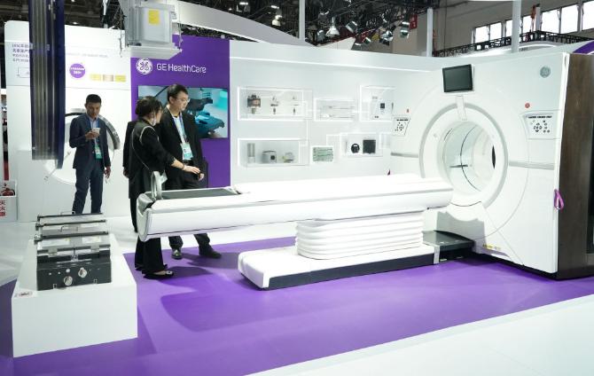 这是在首届中国国际供应链促进博览会健康生活链展区拍摄的GE医疗展位(2023年11月29日摄)。新华社记者 任超 摄
