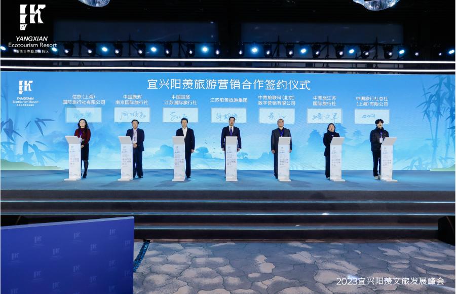 打造发展新增长点,推动文化和旅游与多领域融合互促,阳羡生态旅游度假区打出“组合拳”,广泛开展资源对接与合作,培育发展新动能。峰会开幕式现场,宜兴阳羡生态旅游度假区与上海市旅游行业协会、南京市旅游业协会、常州旅游协会和旅行社协会、无锡旅行社协会等达成会展战略合作。江苏阳羡旅游集团与中青旅联科(北京)数字营销有限公司、中国国旅江苏国际旅行社、中青旅江苏国际旅行社等签订旅游营销合作协议。进一步对接市场资源,做大会展产业,度假区还让会展单位与参会机构、平台、会展采购商进行了现场对接。