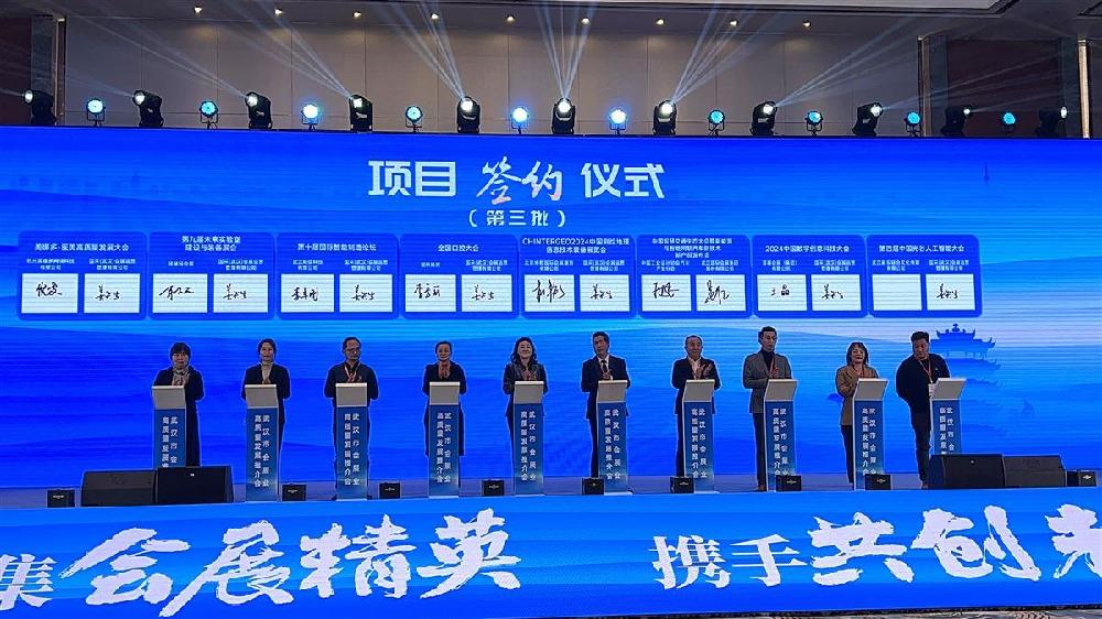 在2023武汉市会展业高质量发展推介会上,包含第二十届“中国光谷”国际光电子博览会暨论坛、2024年世界大健康博览会、2024全球数字贸易大会等在内的20个展会项目现场签约,为武汉市会展业高质量发展注入新动能。