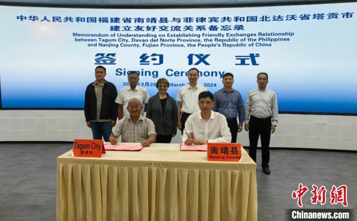 菲律宾北达沃省塔贡市市长黄种伟3月29日率代表团赴福建漳州参访,并与“土楼故里”南靖县缔结友好交流城市。