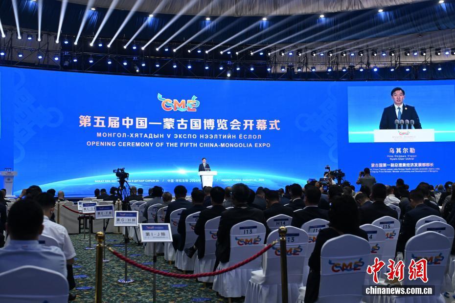 8月25日,第五届中国—蒙古国博览会(以下简称“中蒙博览会”)在呼和浩特市开幕。本届中蒙博览会以“深化互利合作推进合作共赢”为主题,设置高层交流、经贸洽谈、人文交流、展览展示四大板块内容。展区设在内蒙古自治区敕勒川国际会展中心,总面积达43200平方米,设置主题展、商品展等。图为开幕式上,蒙古国第一副总理兼经济发展部部长乌其尔勒发言。