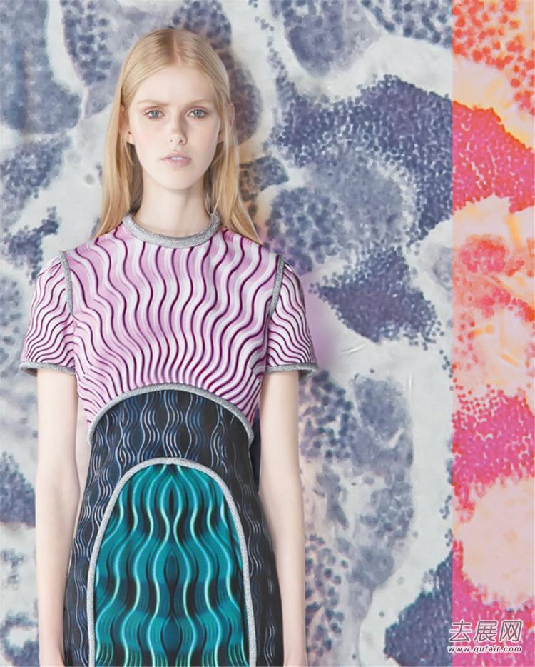 我们对宏观的自然世界进行了研究,当然也研究了原子、细胞和离子的形式和形状这些启发了一系列类似计算机生成图素一样的针法和色彩趋势。数理对称结构和合成纱线一起创造出哑光和闪光并存的双面织物,而受不可触摸的因素如声波的启发设计出了新的条纹图案。