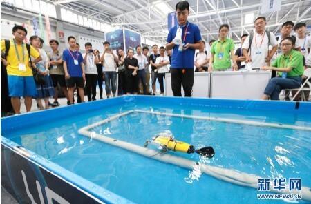 9月12日,观众在2018青岛国际海洋科技展览会上观看水下机器人比赛。 当日,2018青岛国际海洋科技展览会在青岛国际博览中心开幕。本届展会为期三天,以“科技经略海洋,创新实现梦想”为主题,集中展示了海洋工程装备仪器设备、海洋观测探测监测、海洋环境?;?、海水综合利用等多项技术成果和产品。 新华社发(梁孝鹏 摄)