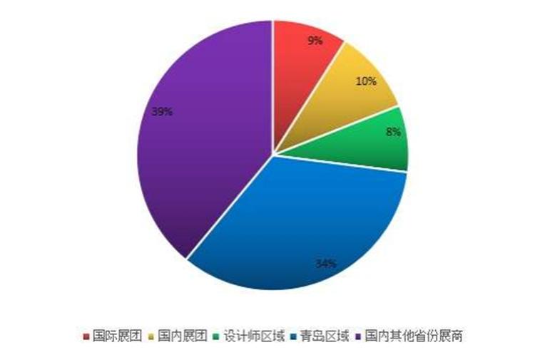 据组委会官方数据统计,青岛珠宝展国际展团占比9%,国内展团占比10%, 设计师区域占比达到8%,山东青岛区域占比34%,国内其他省份展商占比39%。